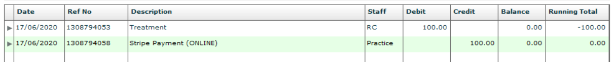 Once the payment is processed and your server picks this up, the payment will show in the patient financials